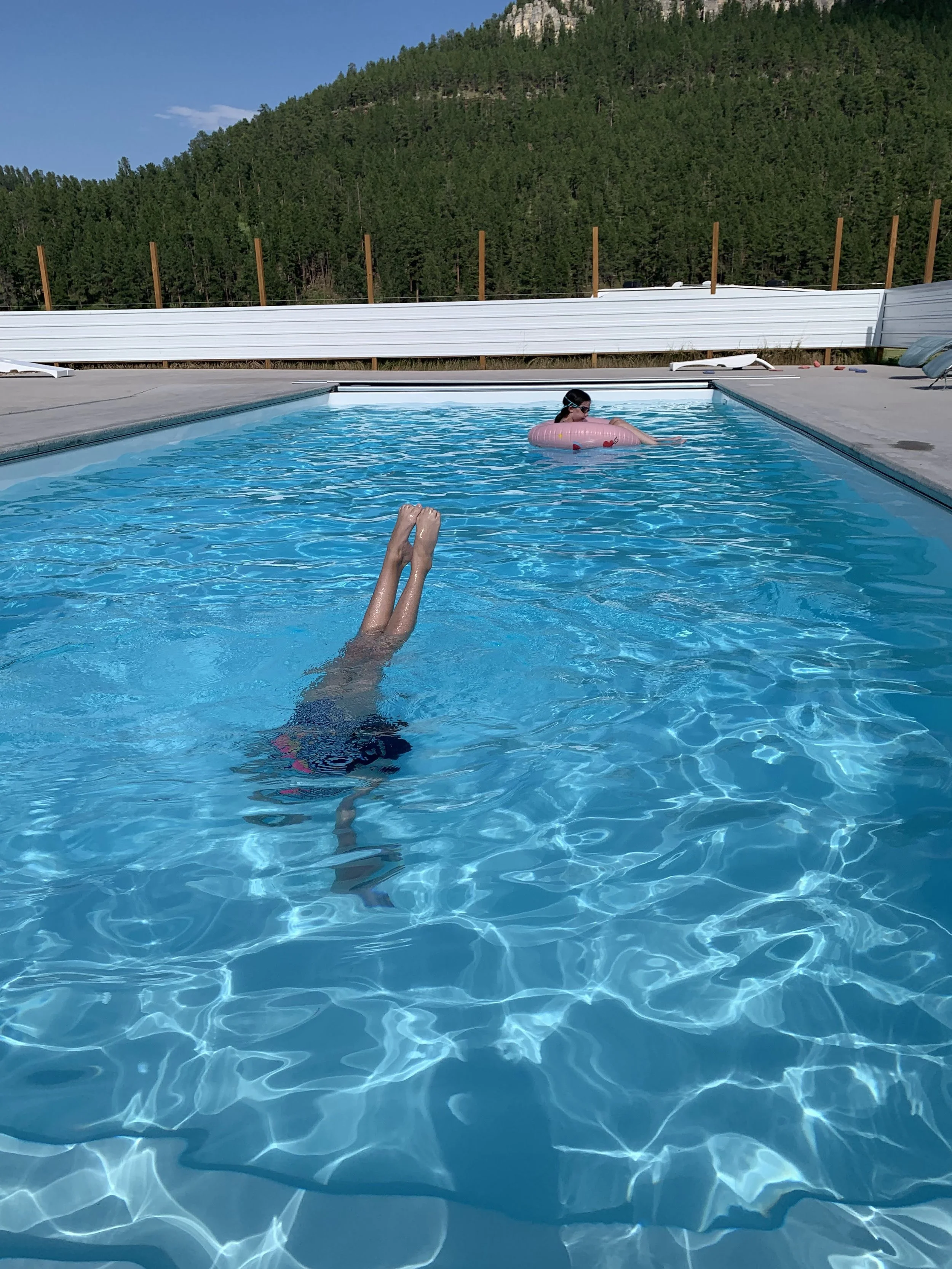 We booked an Airbnb in Nemo south Dakota which is a really remote area in the black hills. The house was a nice house with a salt water pool. We were there in July but the temperature near the house was just the upper sixties. This made the pool time pretty cold but it was still fun.