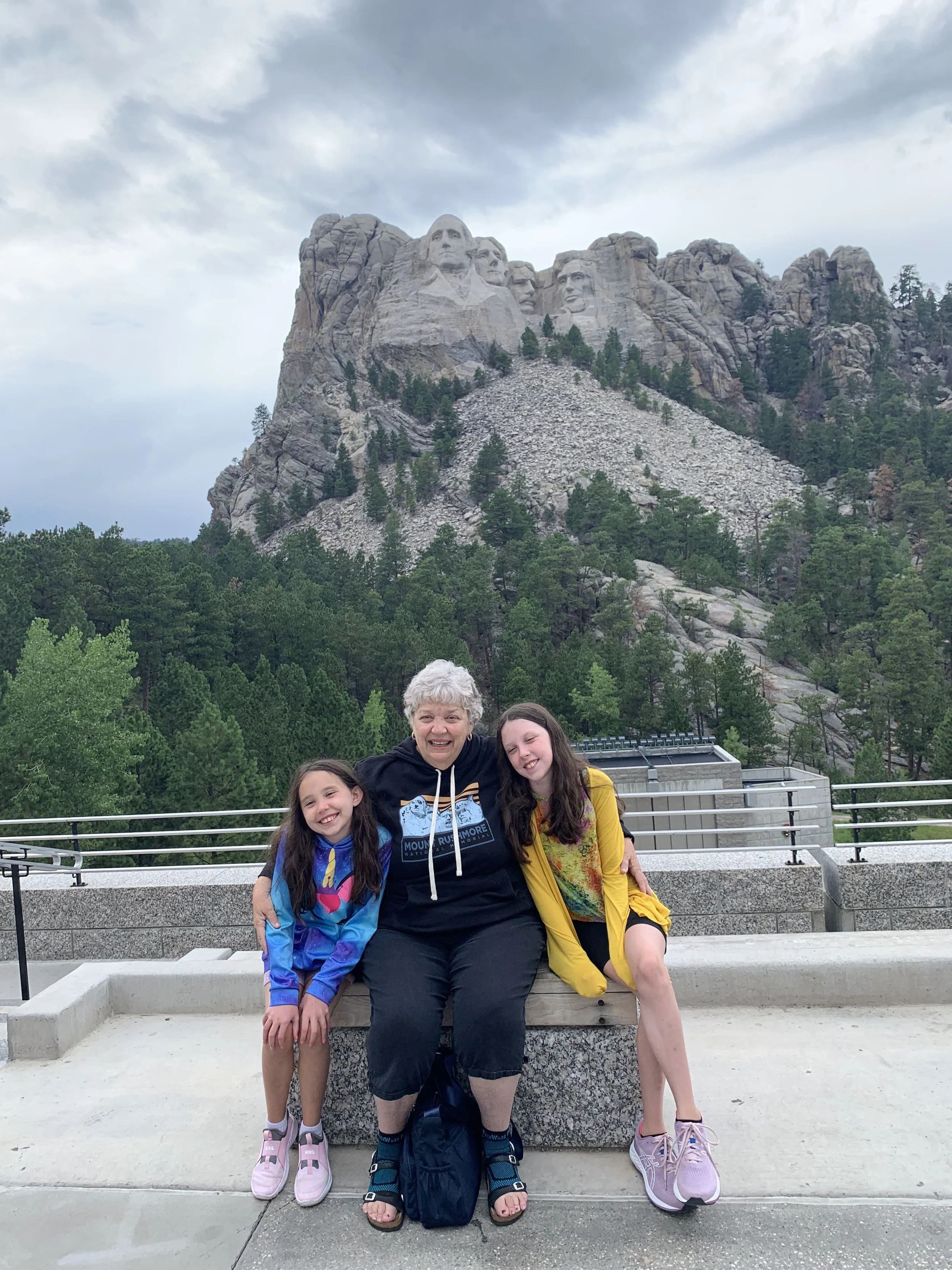 Girls with grandma at Mt. Rushmore